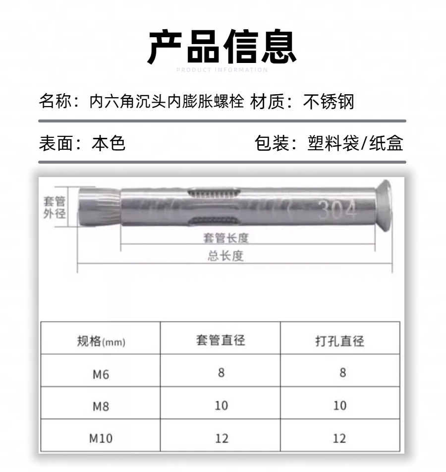 内六角沉头内膨胀螺栓介绍